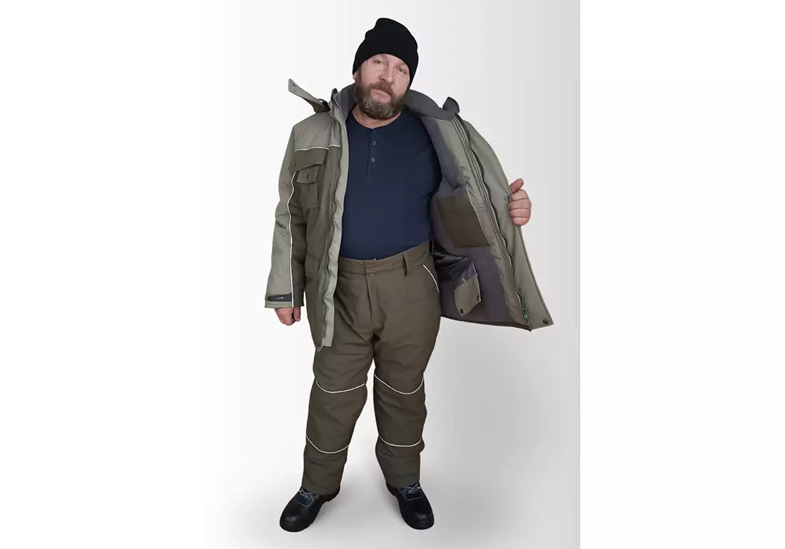 Карманы: 2 верхних накладных на кнопках, 2 нижних сложных с клапаном на кнопке, 2 внутренних на липучке. Светооражающий кант по кокетке на груди и спине, рукавам и капюшоне.