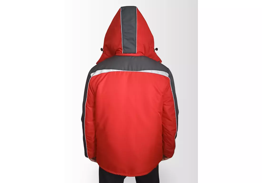 Светоотражающая полоса расположена по кокетке на груди и спине, и светоотражающий кант на рукавах, капюшоне и клапанах карманов.