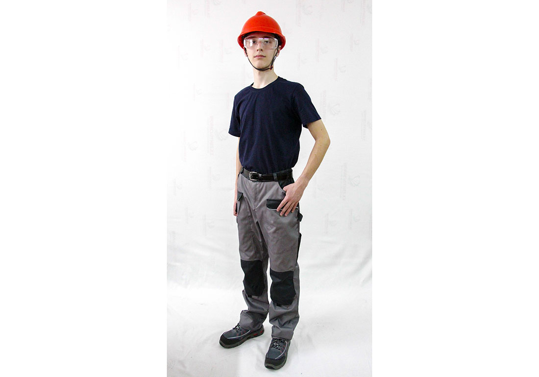 Брюки с застежкой на молнию и пуговицу, с большим количеством накладных и прорезных карманов для размещения и хранения различных инструментов, рации и телефона.