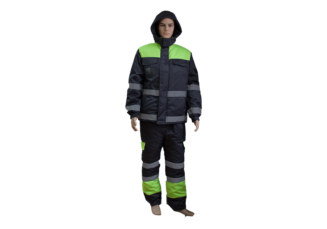 Состоит из куртки и полукомбинезона. Куртка прямая средней длины, Воротник стойка. Центральная бортовая застежка на «молнии» закрывающаяся защитной планкой. Накладные карманы нагрудные и внутренние карманы по нижней полочке изделия. Удобная регулировка по талии кулиской. Утепленный капюшон. Полукомбинезон с высокой спинкой надежно защищает поясничную часть от продувания. Утеплитель синтепон плотностью 200 гр. Удобные накладные карманы. Светоотражающие широкие полосы. Ткань смесовая, плотность 240 г./м2, МВО. Утеплитель синтепон плотностью 400 гр. Ткань подклада шелк, флис. Костюм производства Казахстан.