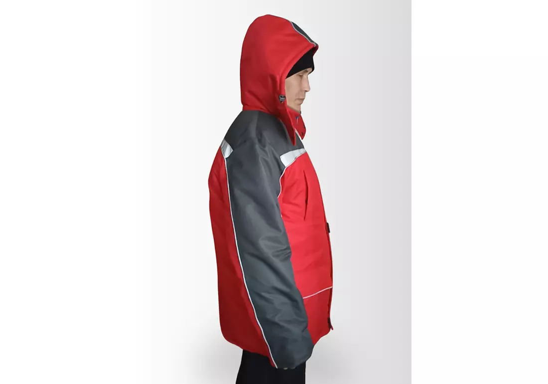 Светоотражающая полоса расположена по кокетке на груди и спине, и светоотражающий кант на рукавах, капюшоне и клапанах карманов.