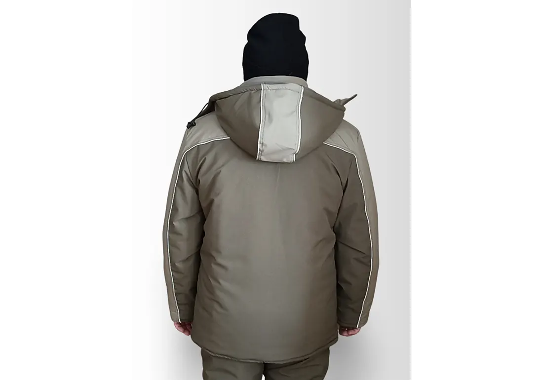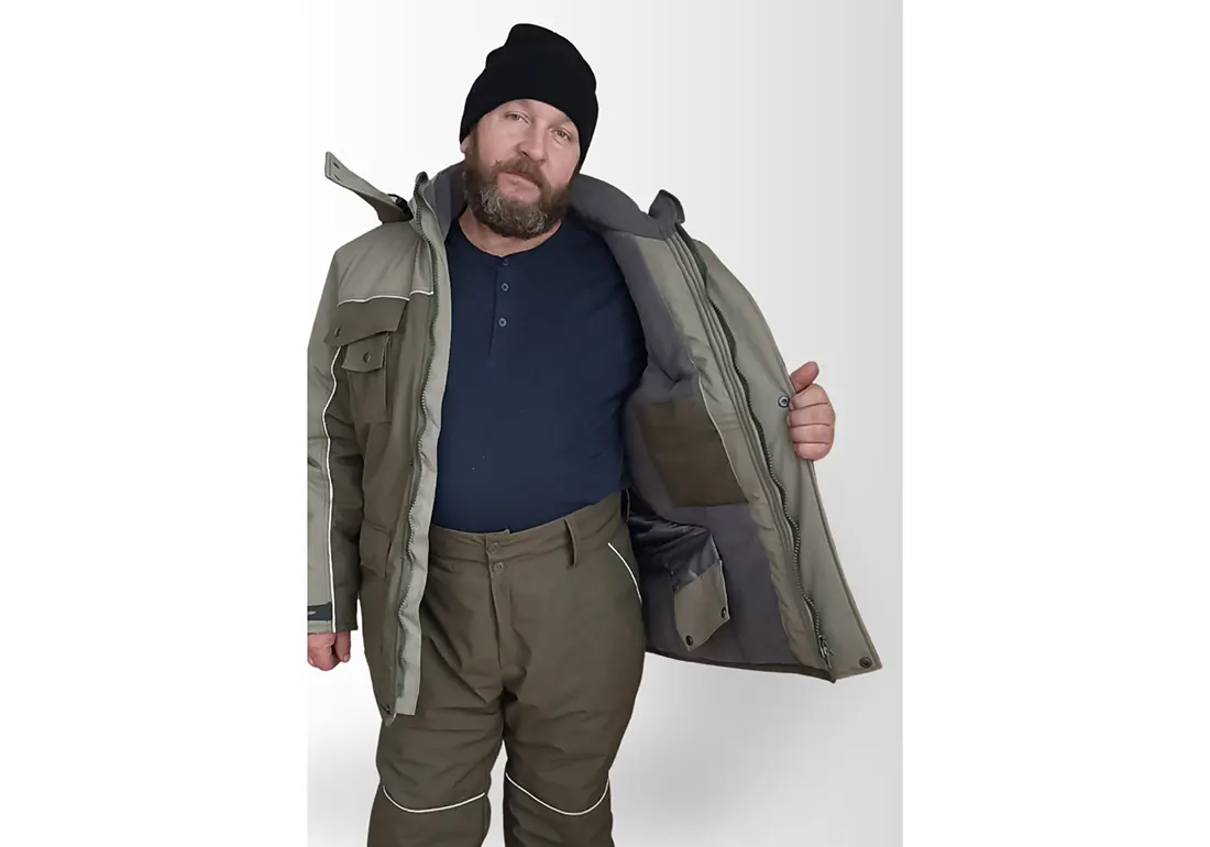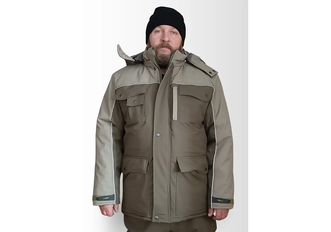 Карманы: 2 верхних накладных на кнопках, 2 нижних сложных с клапаном на кнопке, 2 внутренних на липучке. Светооражающий кант по кокетке на груди и спине, рукавам и капюшоне.